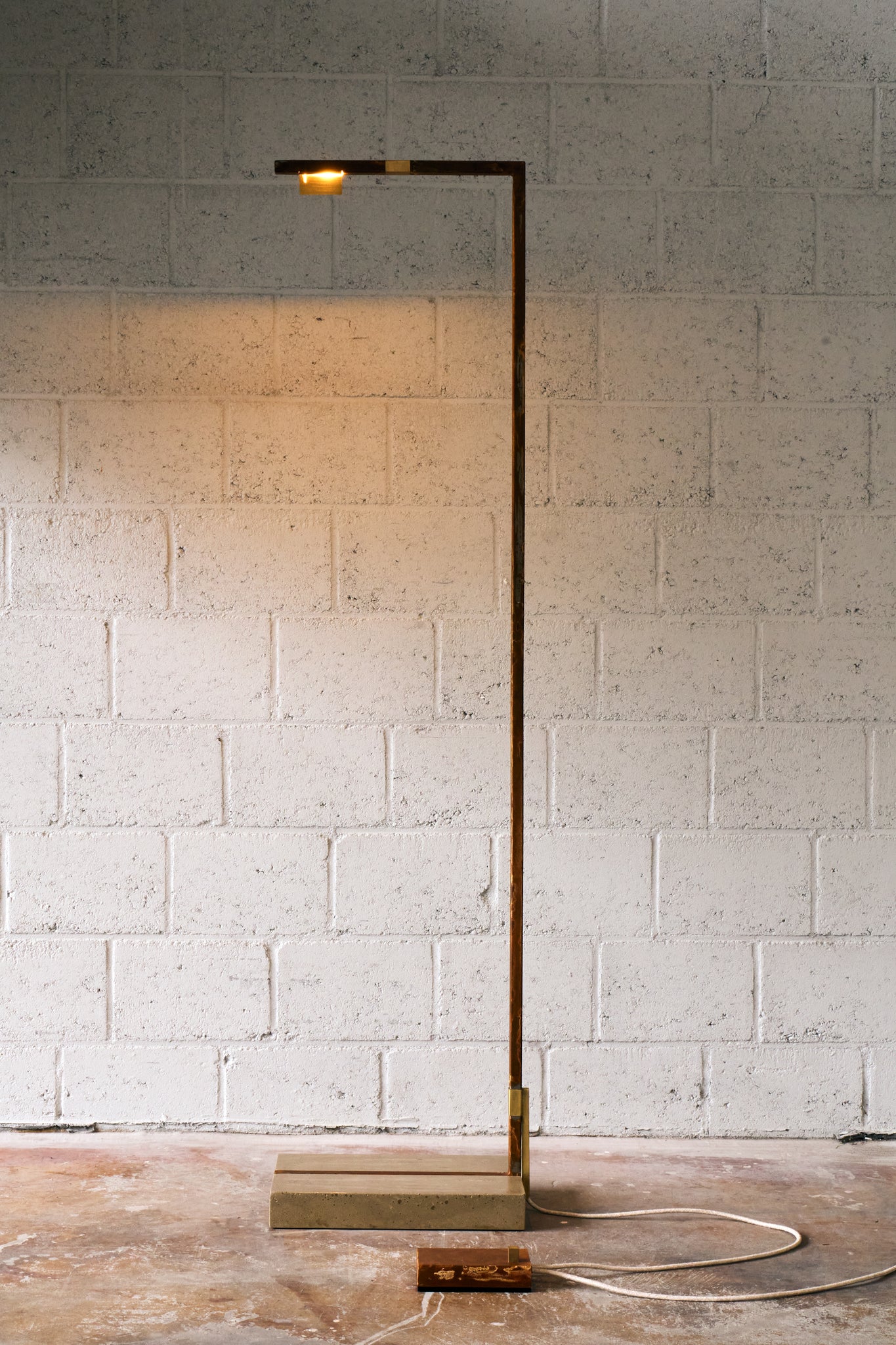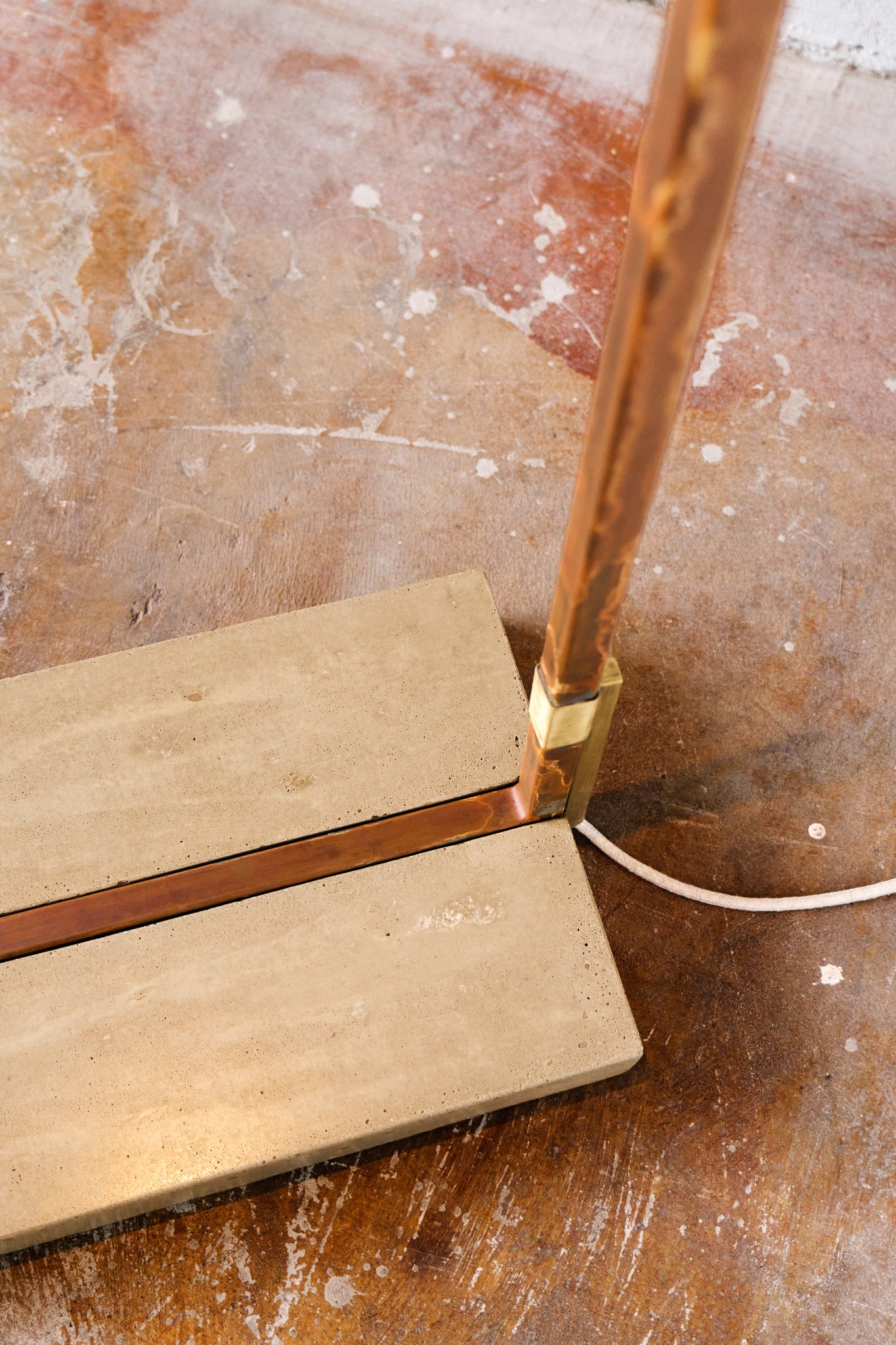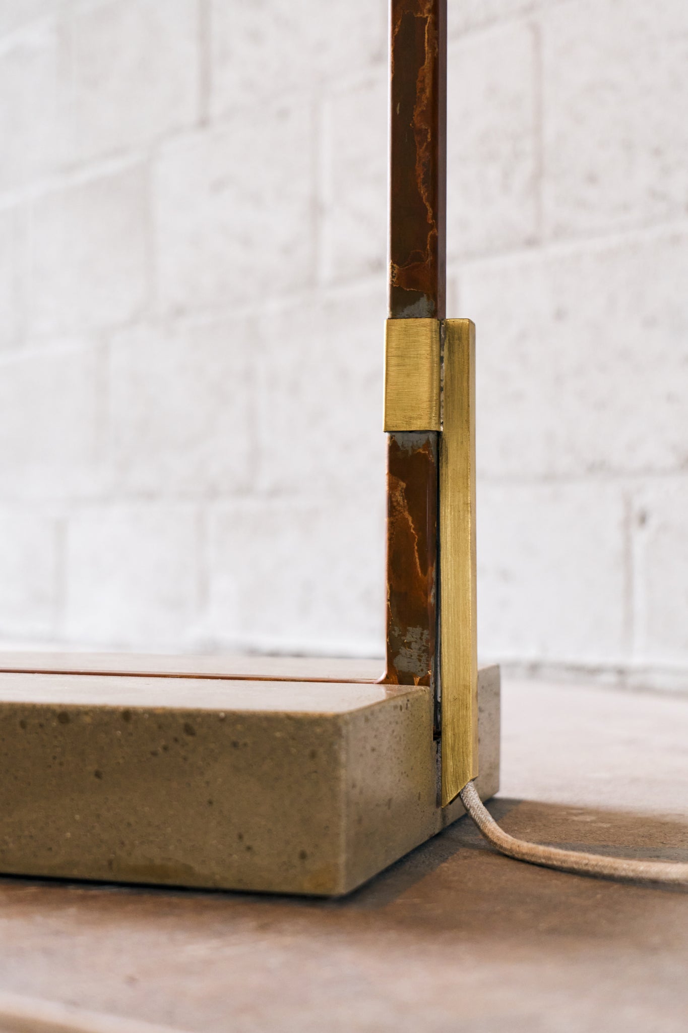Material: oxidised steel frame - brushed brass details- concrete base