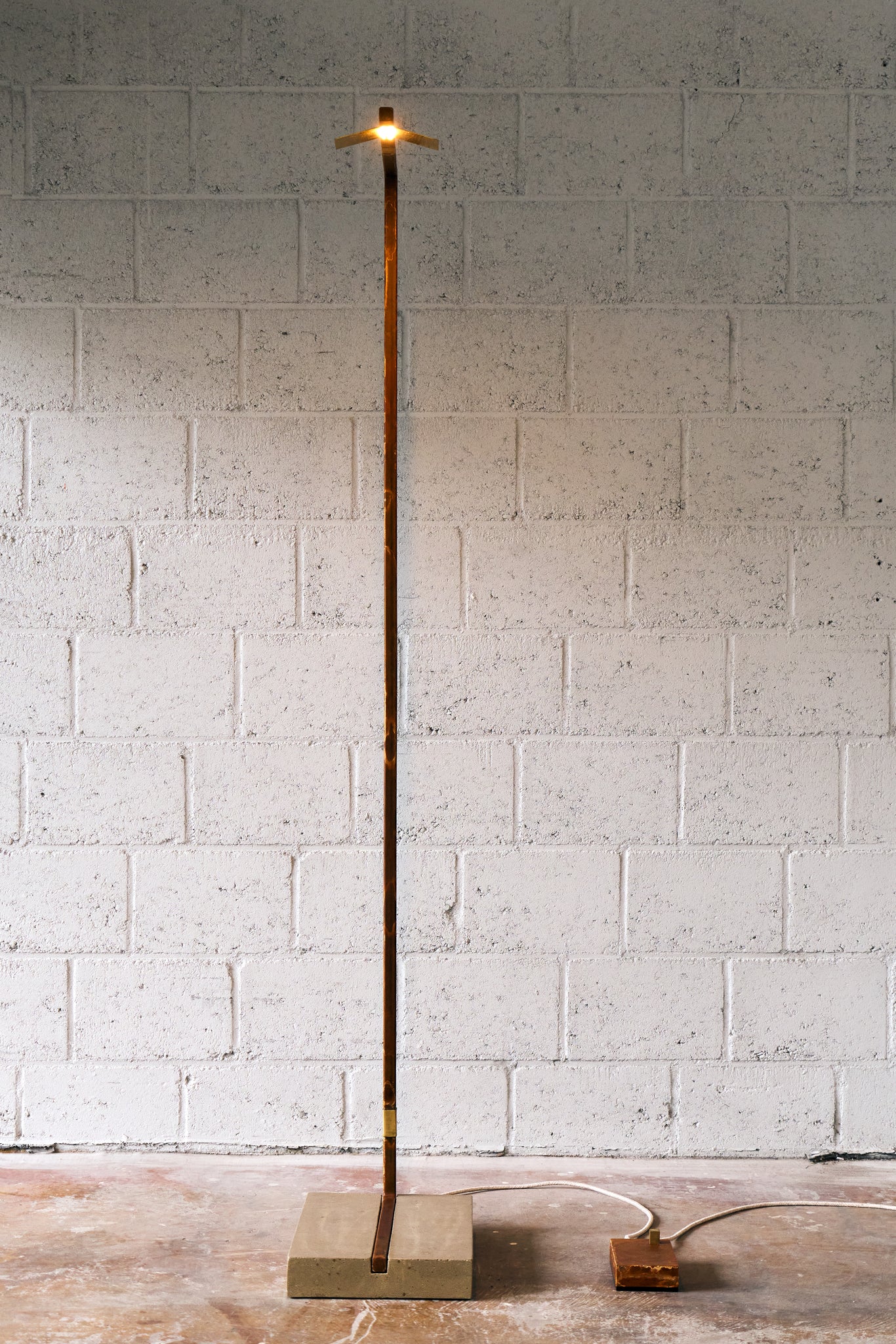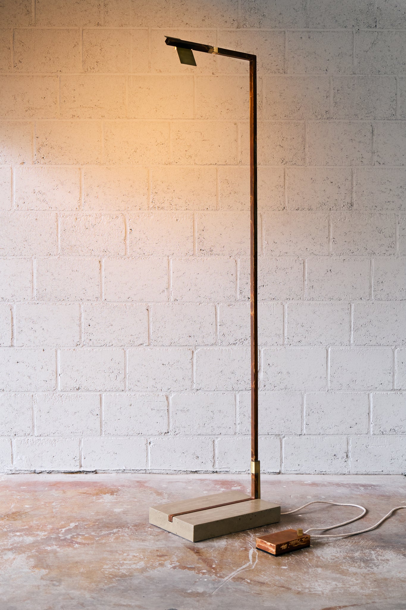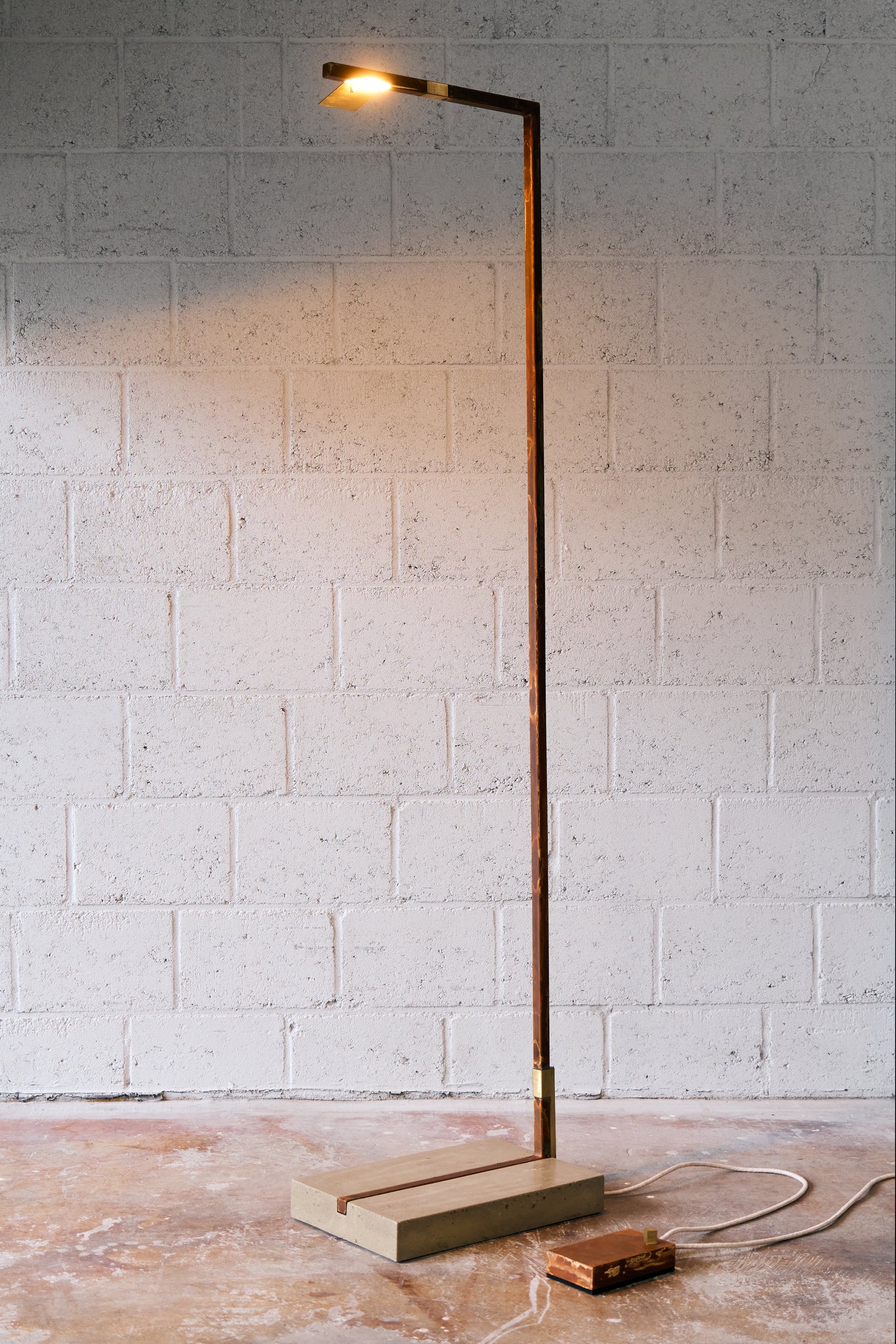 Material: oxidised steel frame - brushed brass details- concrete base